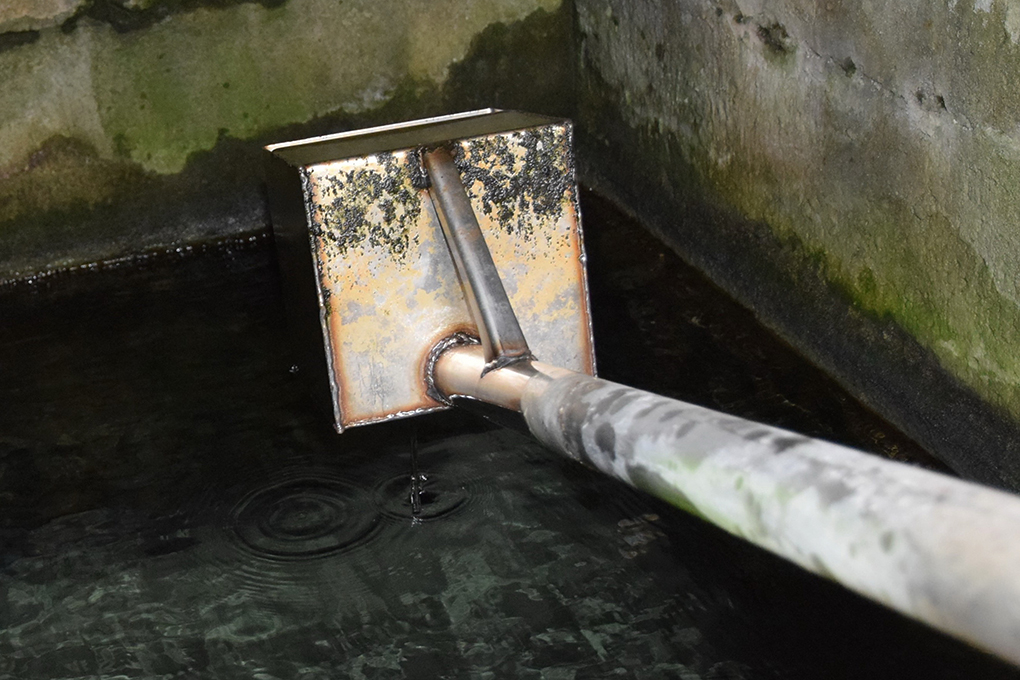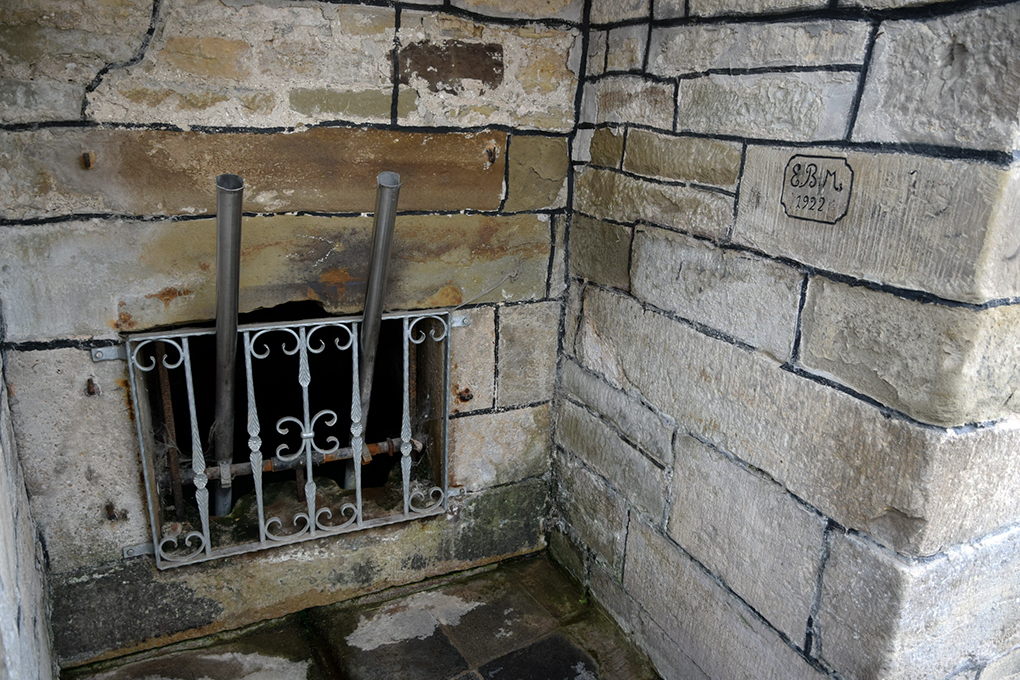 Zunächst aber noch etwas zur gesamten Brunnengeschichte. Das Brunnenhäuschen wurde laut der Giebelinschrift im Jahre 1739 errichtet. Ob es bereits einen Vorgängerbau gegeben hat, sei allerdings nicht bekannt, so Thein. Auch sei nicht bekannt, seit wann die Quelle als Brunnen genutzt wurde. Der Brunnen werde aber nicht von den bereits genannten Bächen gespeist, sondern besitze ein so ergiebiges Quellgebiet, so dass der Brunnen zu jeder Jahreszeit, auch in trockneren Jahren Wasser habe. Zum Vorraum der eigentlichen Brunnenstube führen beidseitig sechs Treppenstufen hinab. Im Vorraum kann dann das Schöpfen mittels Schöpfvorrichtung erfolgen.